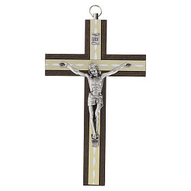 Crucifijo colgable 20 cm metal y madera olivo