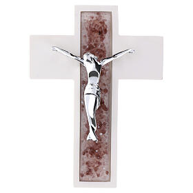 Crucifijo de pared de vidrio de Murano satinado con detalles rosa 16x10,5 cm