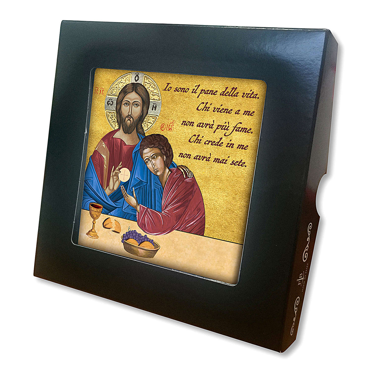 Baldosa de cerámica de 10x10 cm con icono de Jesús que instituye la Eucarestía realizado por la famosa estudiosa de iconografía Manfredi.