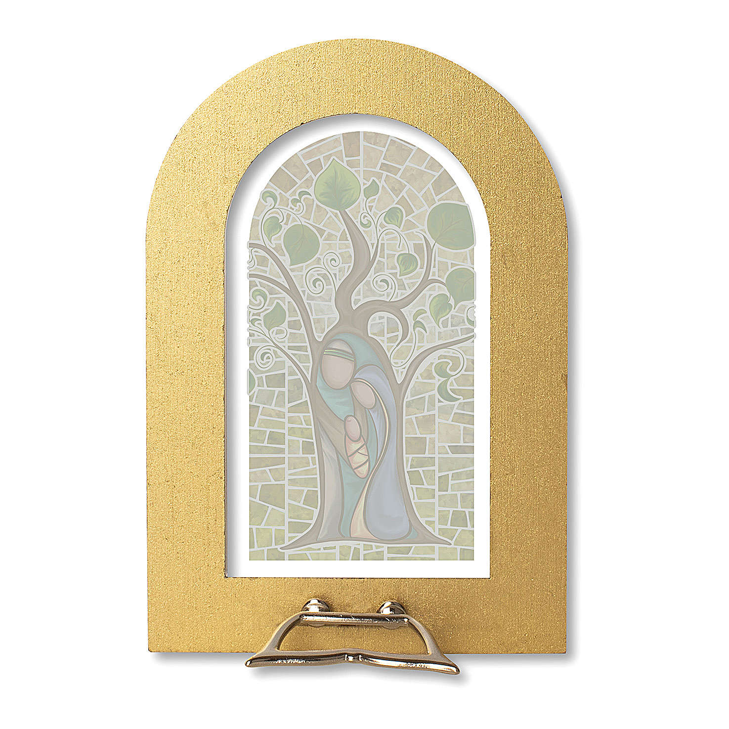 Marco de madera dorada de 14x8,5 cm con vidriera semi transparente con el Árbol de la Vida en estilo contemporáneo.