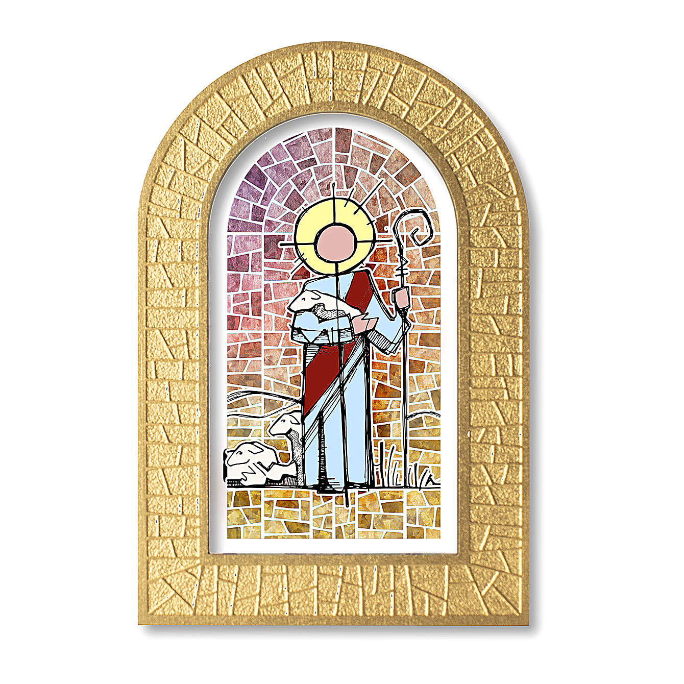 Marco con vidriera imagen Jesús Buen Pastor 14x8,5 cm