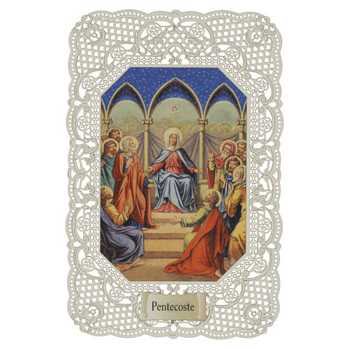 Estampa Pentecostés descenso del Espíritu Santo 12x7 cm motivo encaje