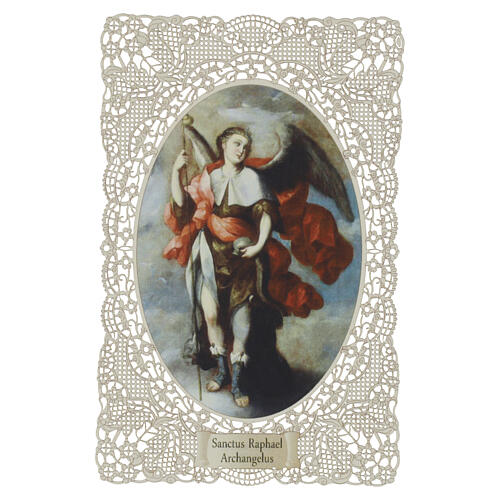 Estampa San Rafael Arcángel 12x7 cm con motivo encaje