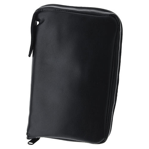 Funda realizada de cuero verdadero de color negro, con estructura tipo cubierta y dimensiones compatibles con la edición vaticana.