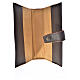 Funda para Liturgia de las Horas volumen único edición española de cuero verdadero marrón oscuro con imagen de la Virgen y cierre con botón automático.