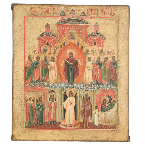Icono antiguo de la Madre de Dios del Velo (Pokrov), procedente de Rusia y datado en el siglo XVIII.