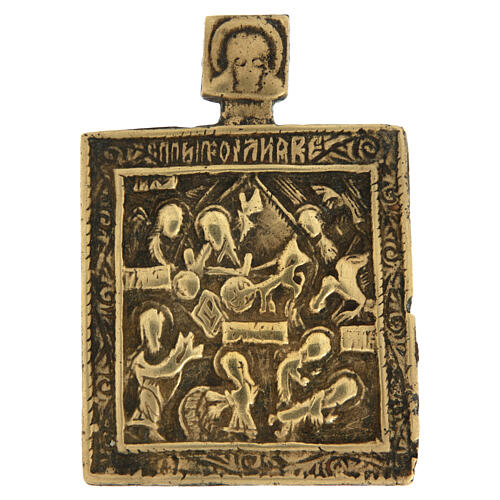 Escena arraigada en la tradición ortodoxa, simboliza el tránsito de la dimensión terrenal a la celestial y la continuidad de la fe. Iconos de viaje de bronce utilizados por peregrinos y fieles como protección y objeto de oración.