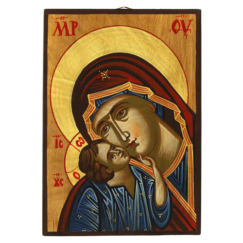 Icono rumano de la Madre de Dios Jaroslavskaja de 14x18 cm pintado a mano en Rumanía con pintura al óleo sobre una tabla de madera maciza.