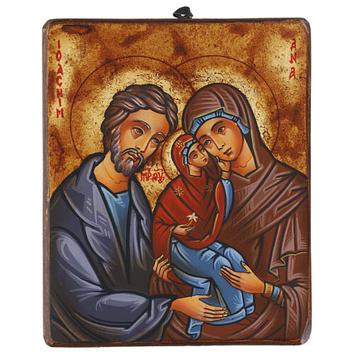 Ícono Rumano pintado San Joaquín, María y Santa Ana medio busto 22x18 cm