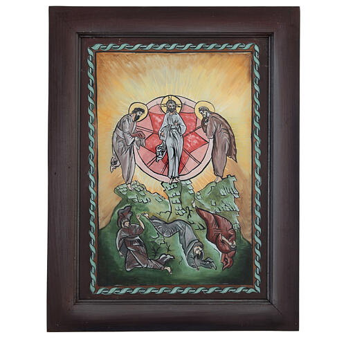 Icono de la Transfiguración de 40x30 cm pintado a mano al óleo sobre vidrio en Rumanía.