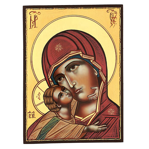 Icono Virgen de la Ternura Vladimirskaja 30x25 cm rumano pintado
