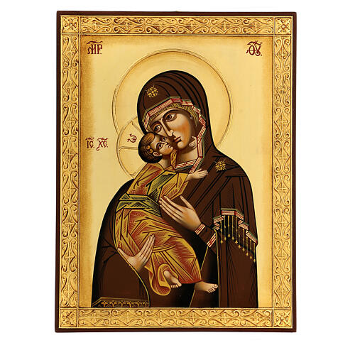 Icono de la Madre de Dios de la Ternura Vladimirskaja de 40x30 cm pintado a mano en Rumanía.