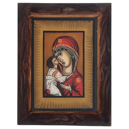 Icono de la Madre de Dios Vladimirskaja de 34x27 cm pintado a mano en óleo sobre vidrio.