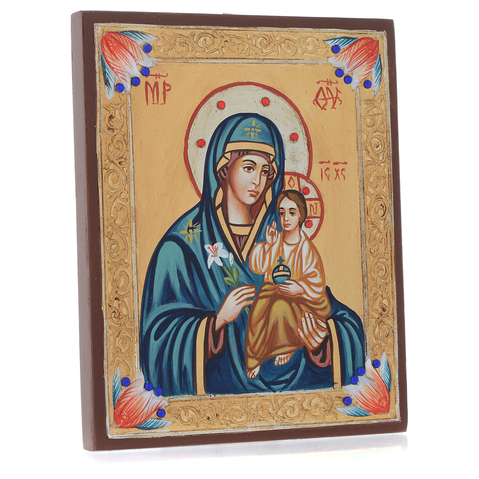 Este ícono representa a los esposos que han decidido de vivir el sacramento del matrimonio con Jesús y bajo la protección de María. Son representadas las armas necesarias para la victoria contra el mal: las lámparas simbolizan la oración, el templo la Santa Iglesia y el don del Padre y el Espíritu Santo. Son estas los supuestos para una alianza de amor que dura toda la vida y la eternidad. Un ícono que puede ser regalado a los jóvenes novios que inician la vida matrimonial. La imagen del ícono es muy elocuente y llena de esperanza.