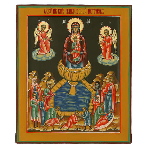 Icono ruso moderno de la Fuente de la Vida de 31x26 cm pintado a mano sobre tabla.