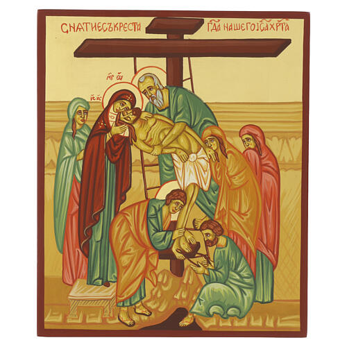 Icono Descendimiento de la Cruz 30x25 cm estilo ruso pintado a mano