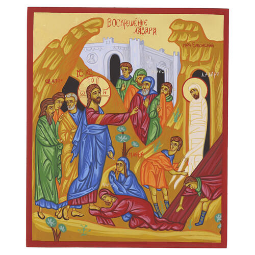 Icono Resurrección de Lázaro pintado a mano estilo ruso 30x25 cm