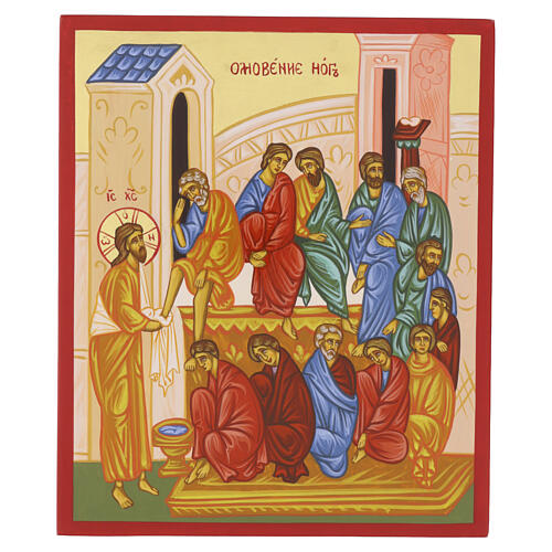 Icono del Lavatorio de los pies de 30x25 cm pintado sobre madera en estilo ruso.