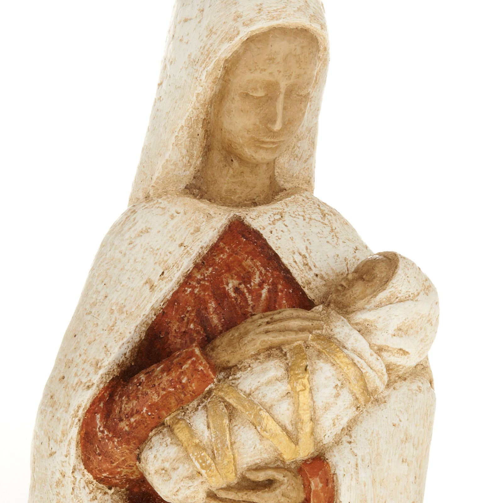 Estatua de piedra de los Pirineos de la Santa Virgen con el niño en brazos.
