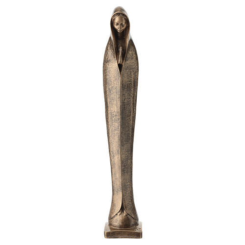 Estatua de la Virgen con manos juntas de polvo de mármol de Carrara con acabado bronceado.
