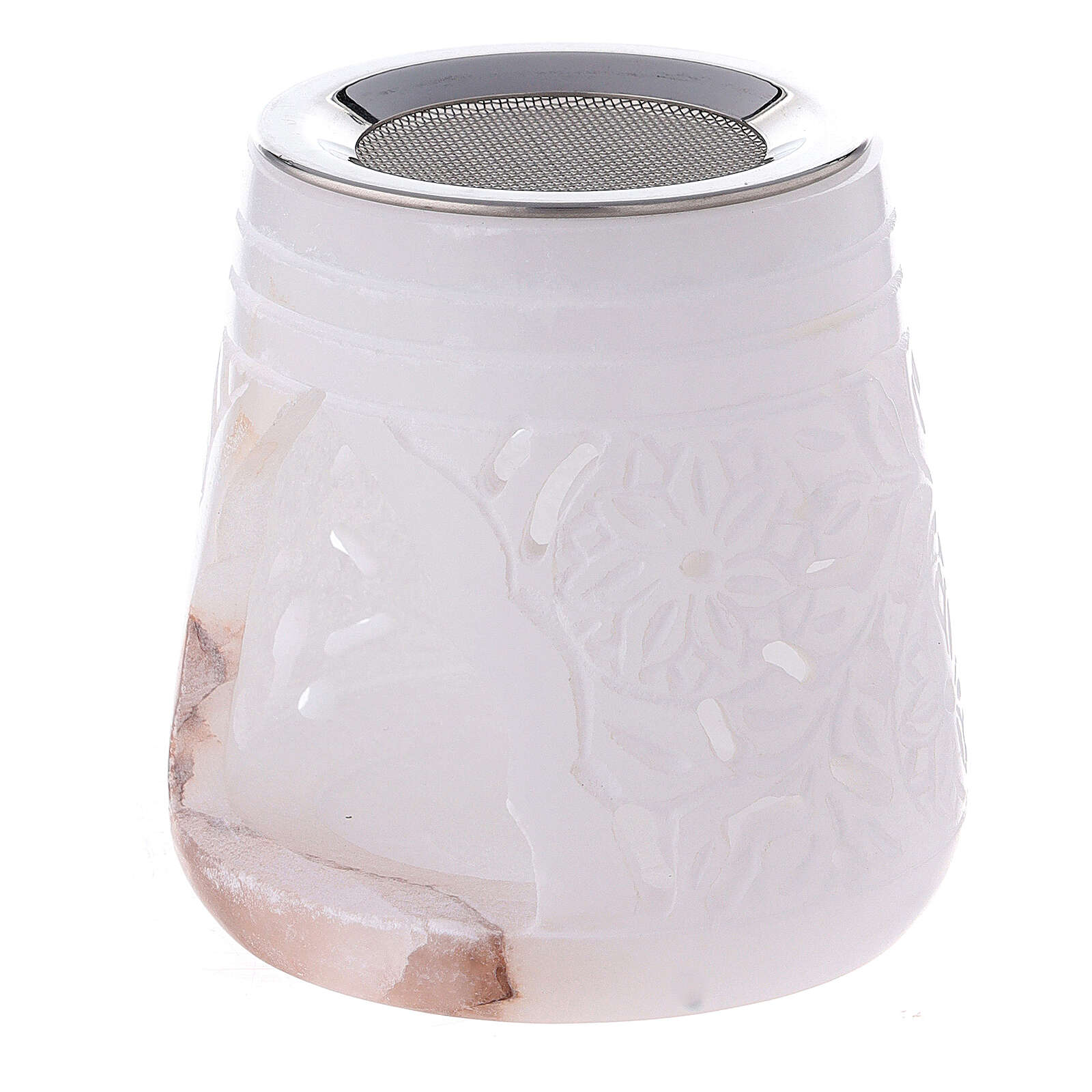 Pebetero cónico esteatita blanca 8 cm flores