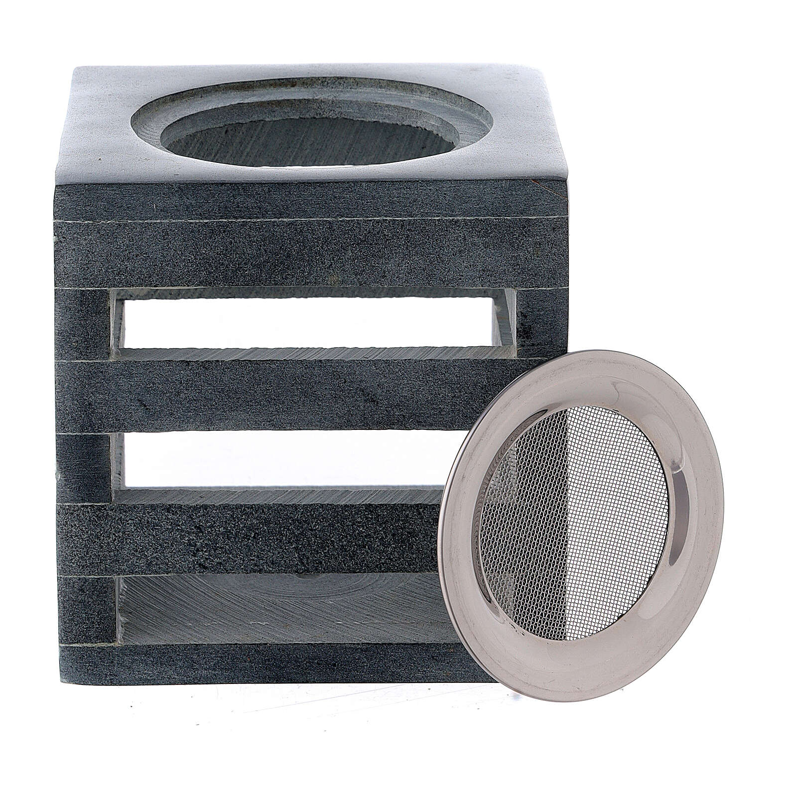 Pebetero piedra ollar cubo filetes 8 cm