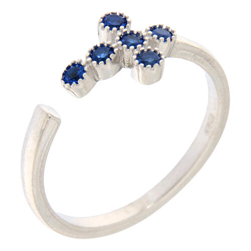 Anillo ajustable cruz zircones azules plata 925 Agios