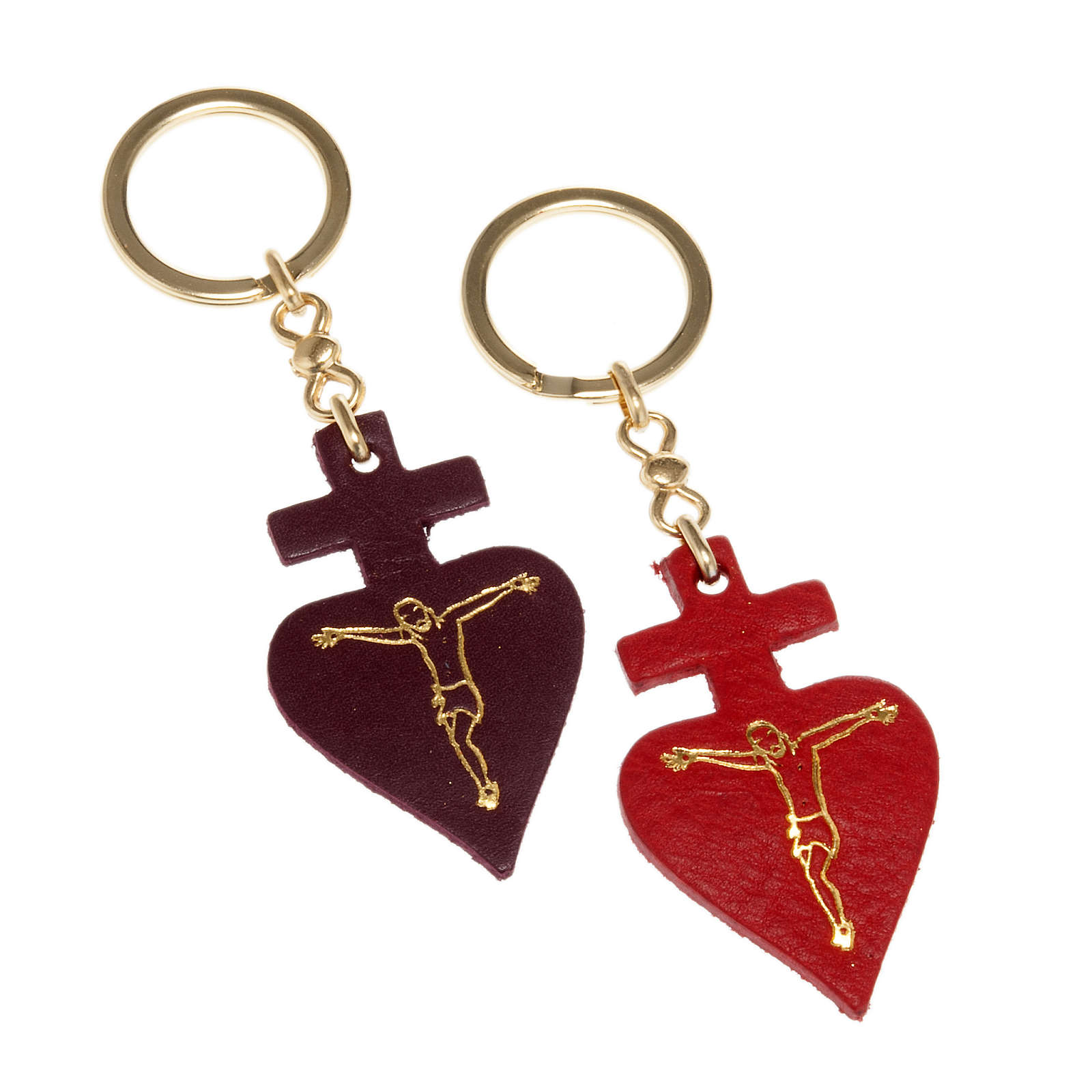 Llavero corazón en cuero de San Antonio de Padua. El corazón pendiente es en verdadero cuero con la imagen de Cristo y la inscripción 'San Antonio de Padua' en oro, en el reverso.