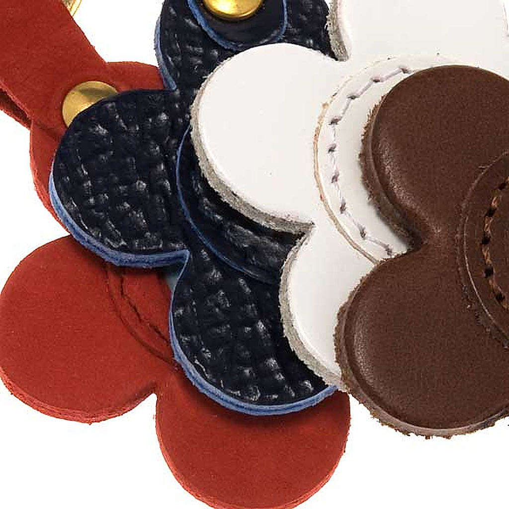 El llavero está hecho de cuero genuino, artesanía 100% italiana, en forma de flor con la Virgen de Fatima.