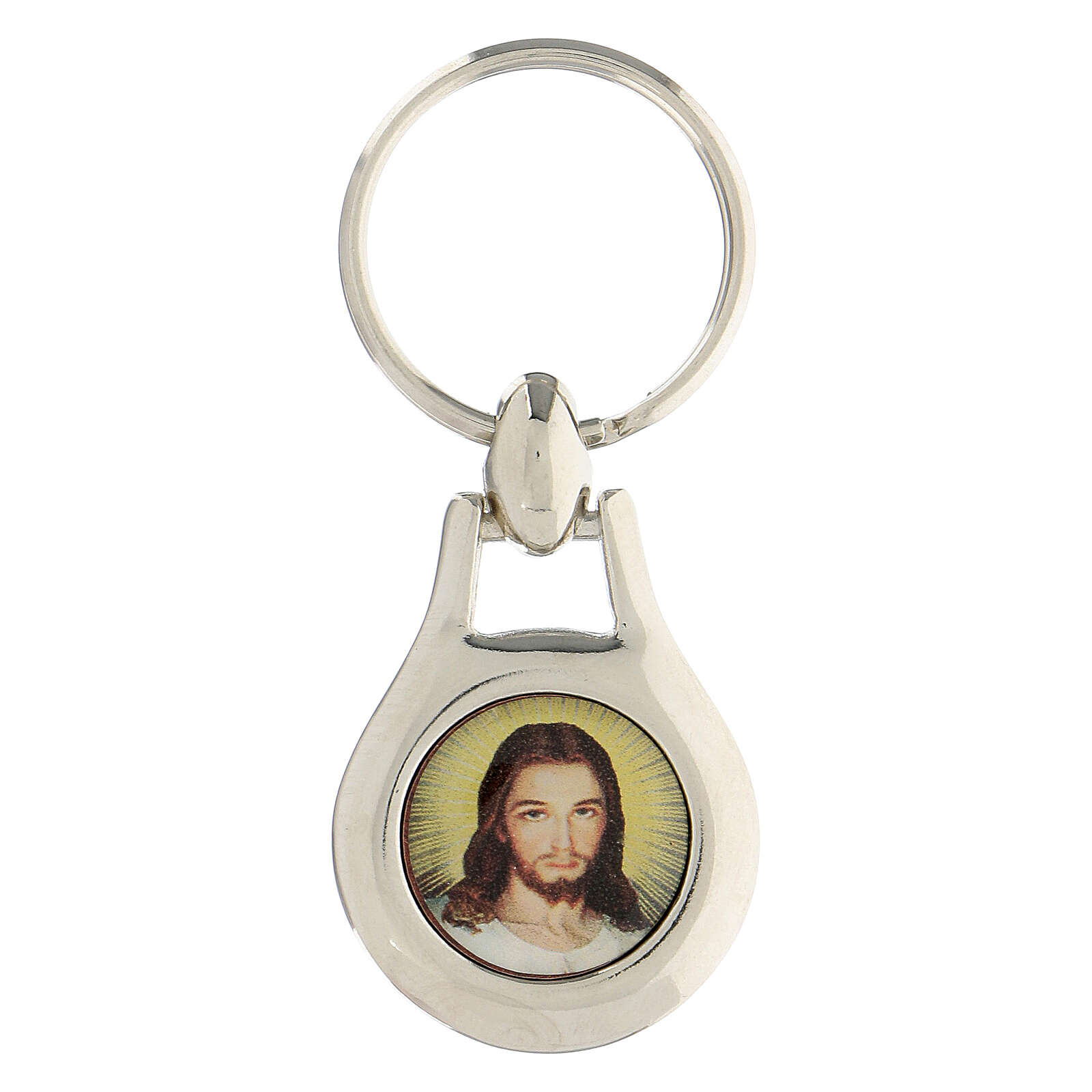 El llavero es realizado en acero, es de dimensiones redonda, viene con una pequeña placa con la imagen de Jesús Misericordioso.