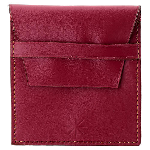 Estuche para rosario rojo de 9x8 cm con cierre de bolsillo.