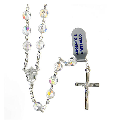 Rosario cristal blanco granos 6 mm plata 925 crucifijo