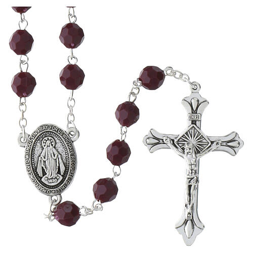 Rosario con granos vidrio amatista oscura 8 mm Virgen Milagrosa