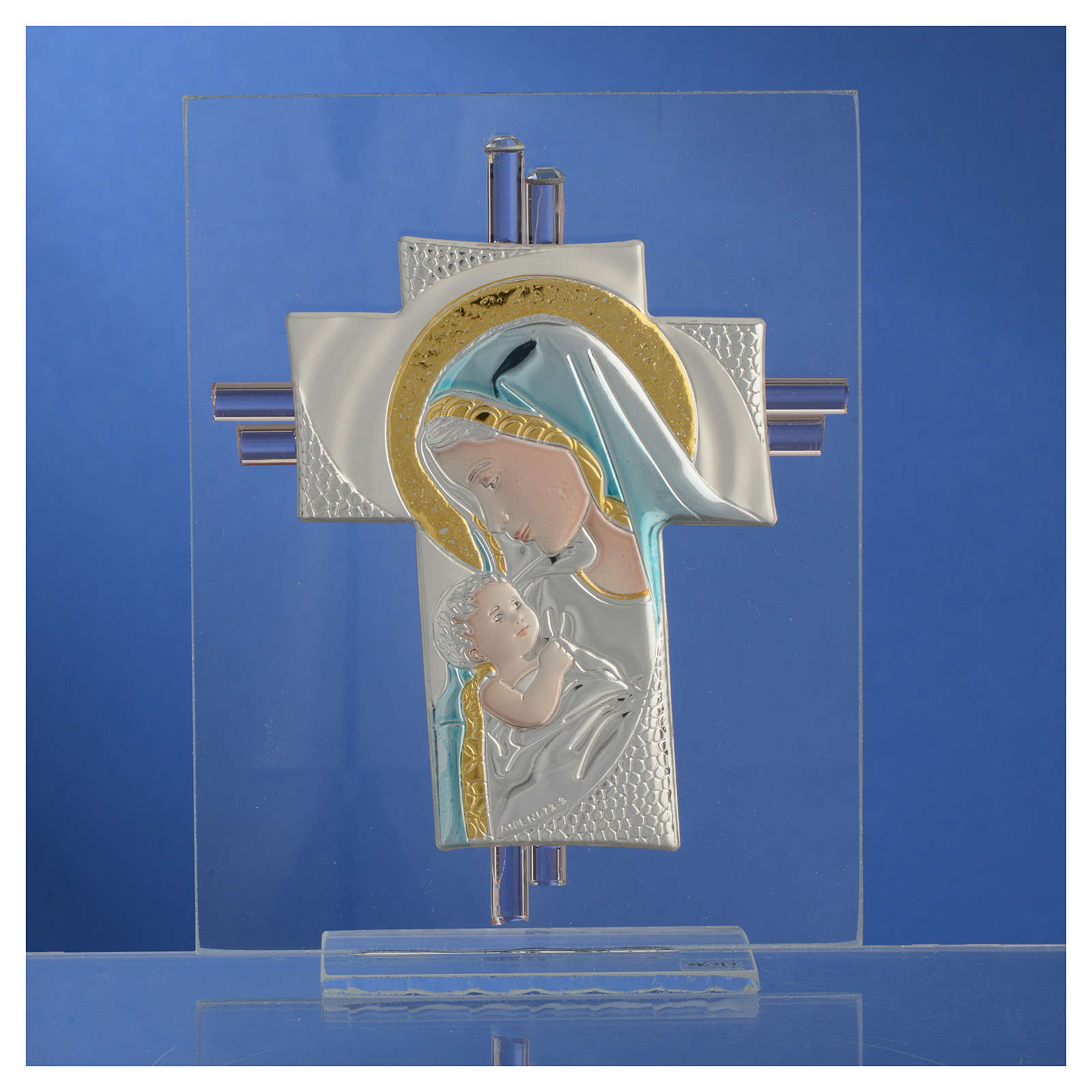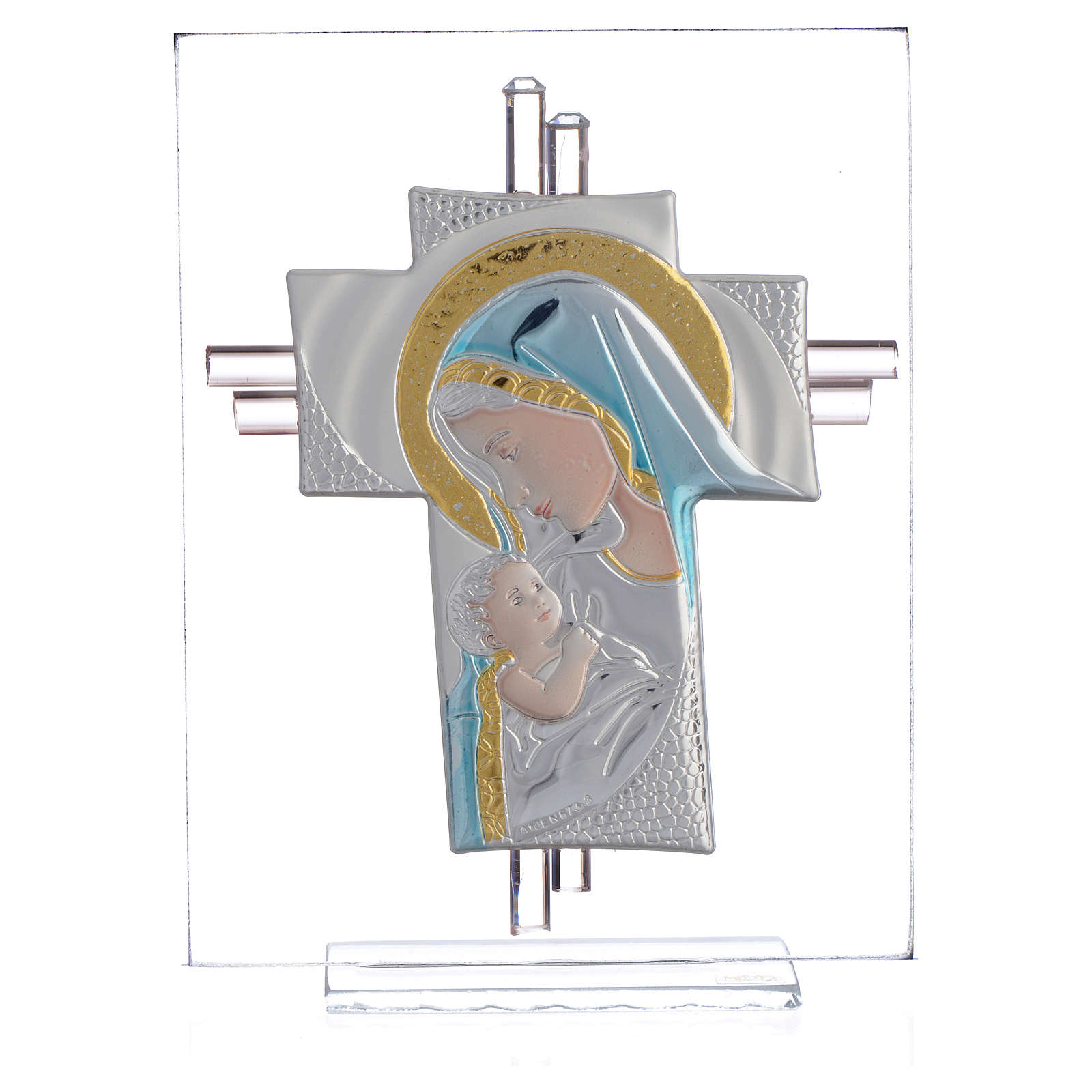 Cuadro para apoyar realizado en Vidrio con imagen imprimida en lámina de plata y cristales decorativos.