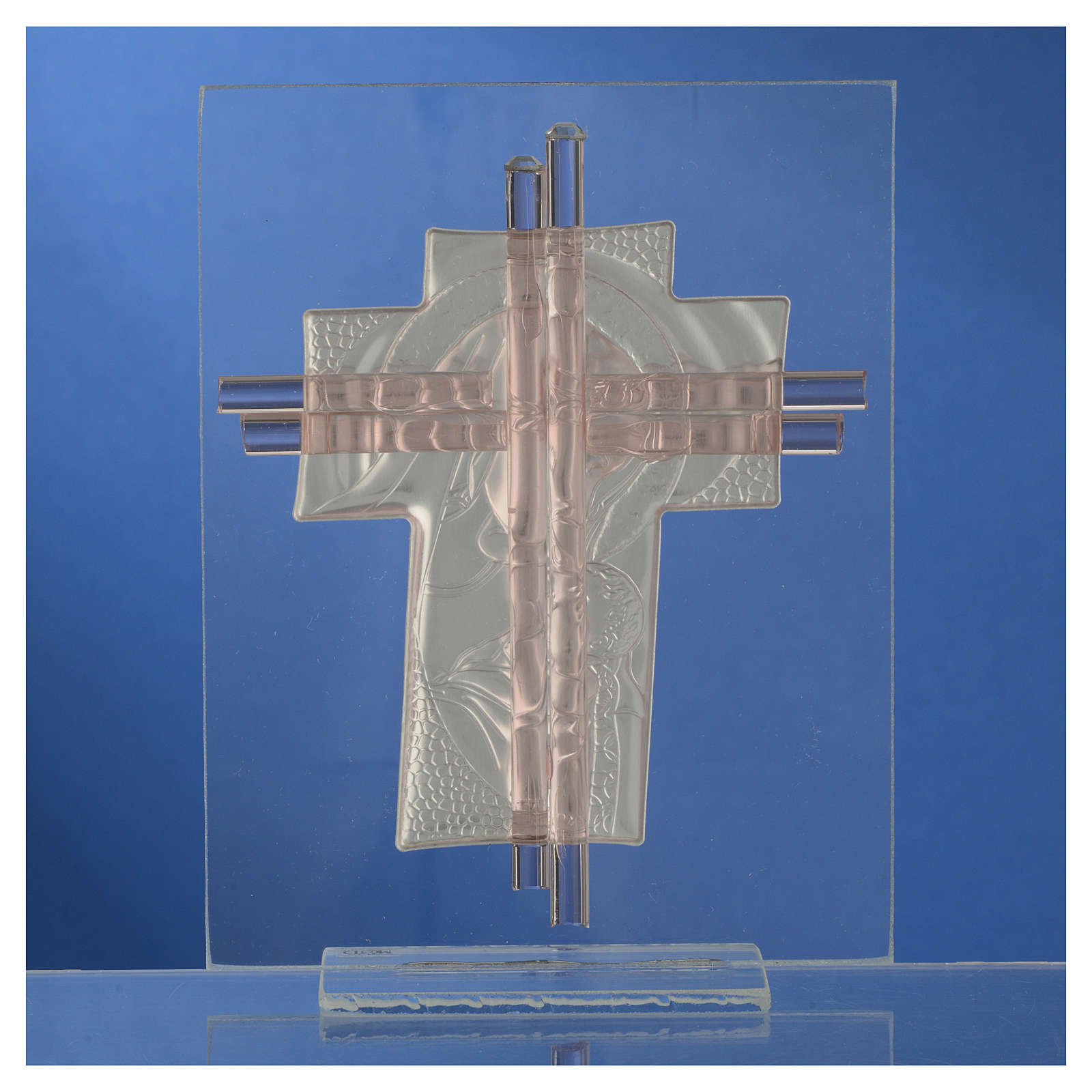 Cruz Nacimiento vidrio Murano azul y Plata h. 14,5 cm