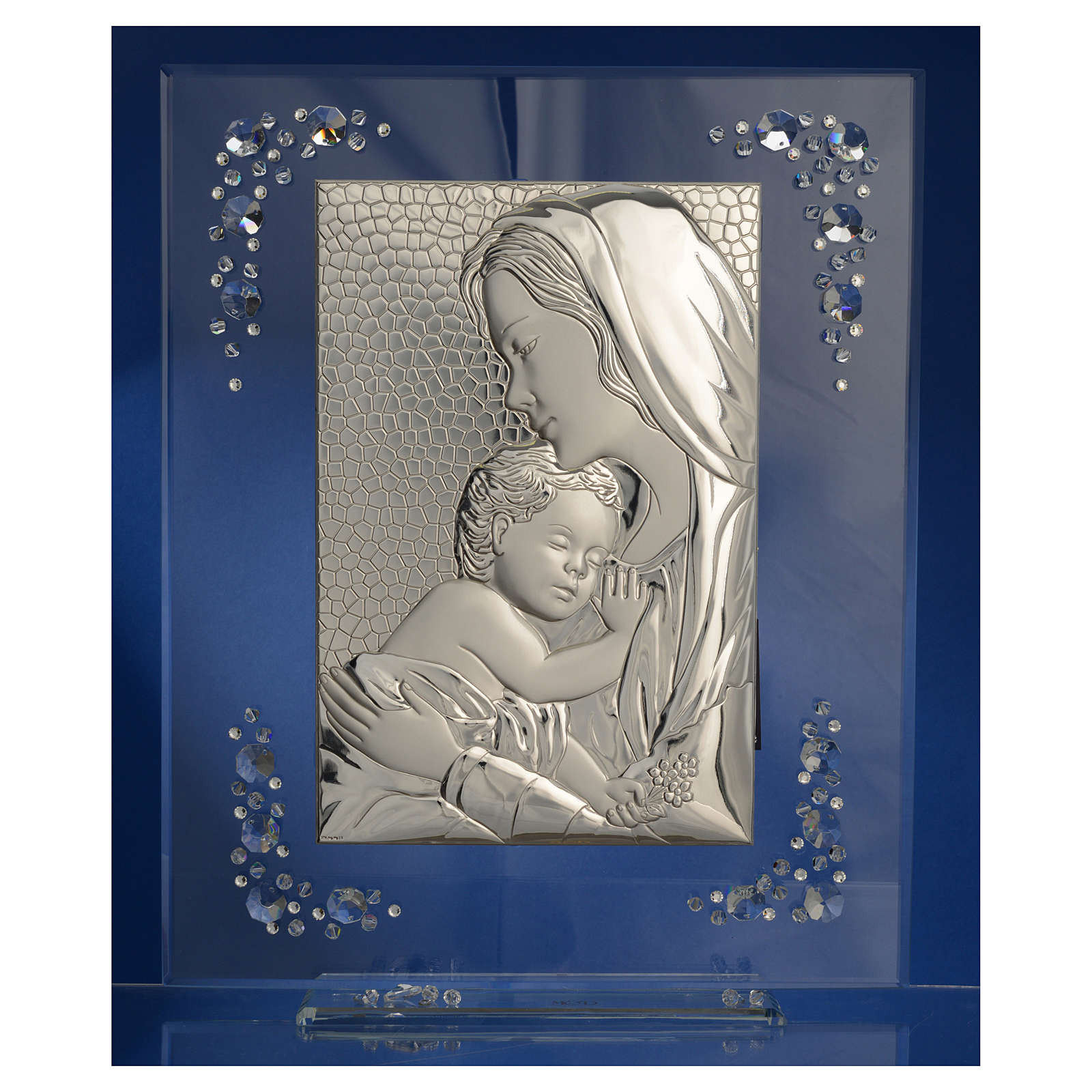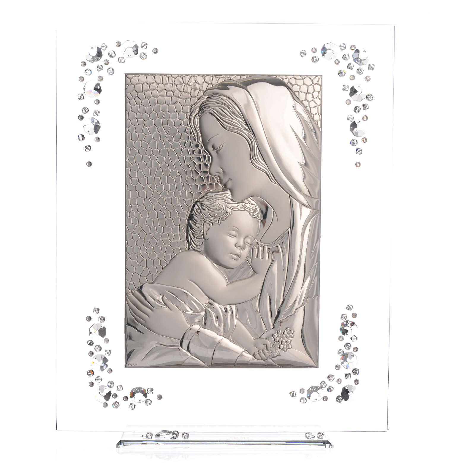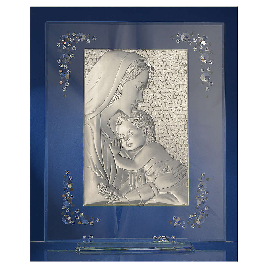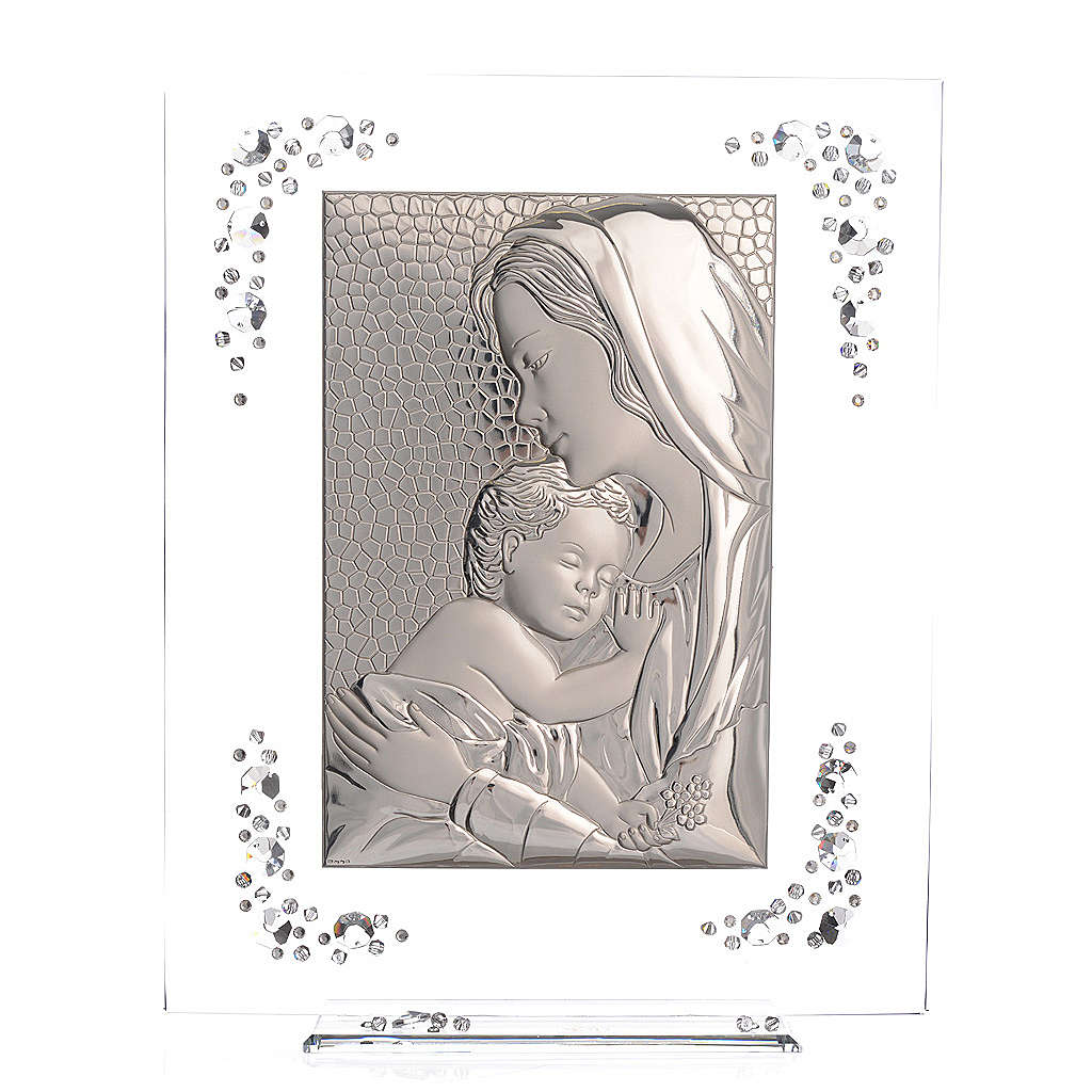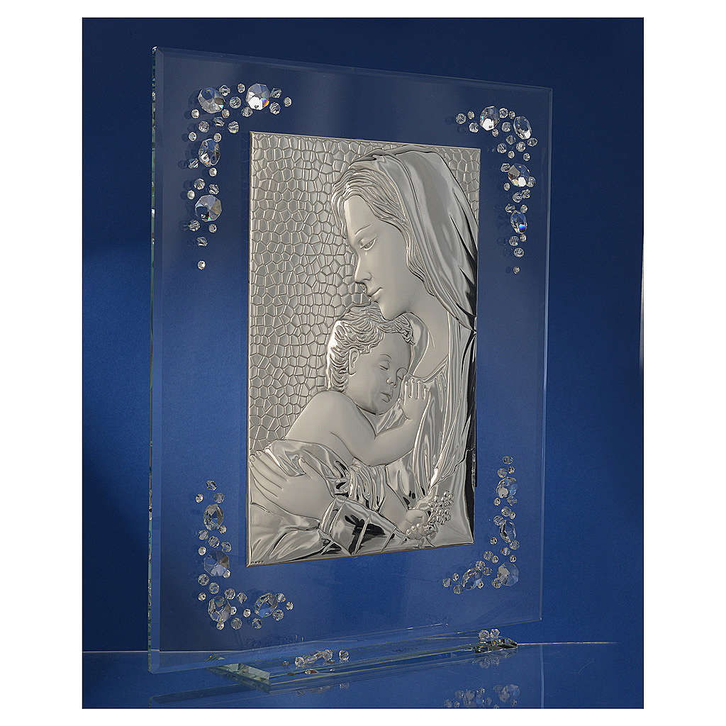 Cuadro con imagen de la Maternidad de plata y cristales.