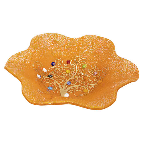 Cuenco naranja flor de vidrio de Murano 20x20 cm con Árbol de la Vida dorado