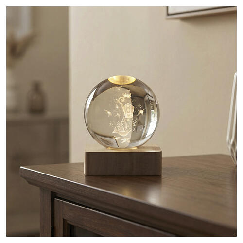 Recuerdo Confirmación esfera cristal paloma iluminada pilas LED 8 cm