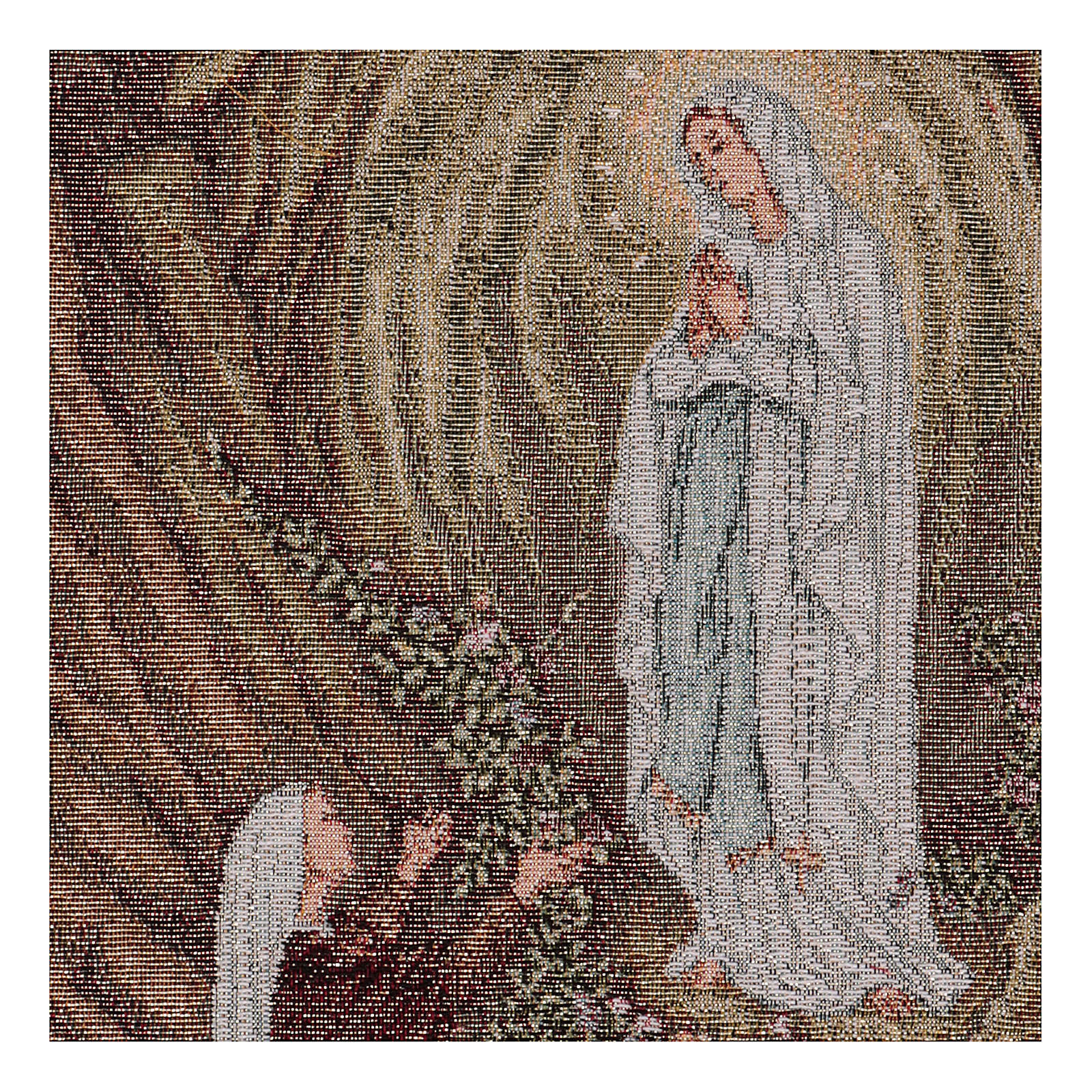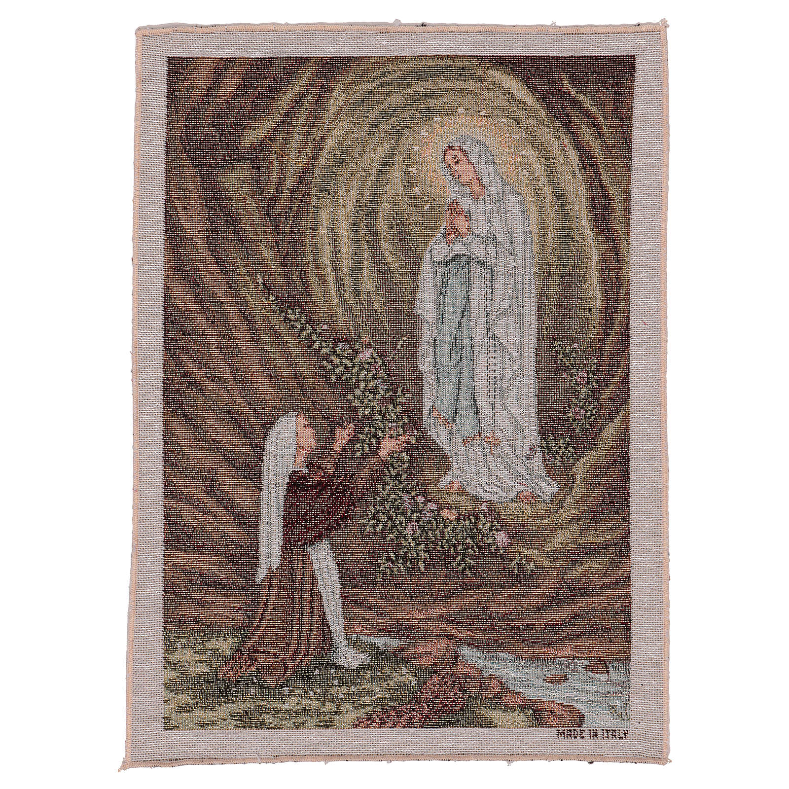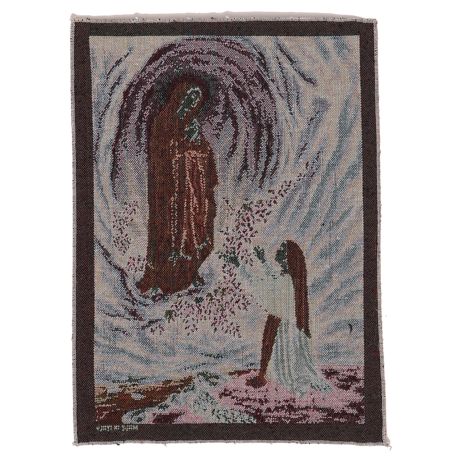 Tapiz Aparición de Lourdes de 40x30 cm de tejido jacquard realizado en Italia y acabado a mano.