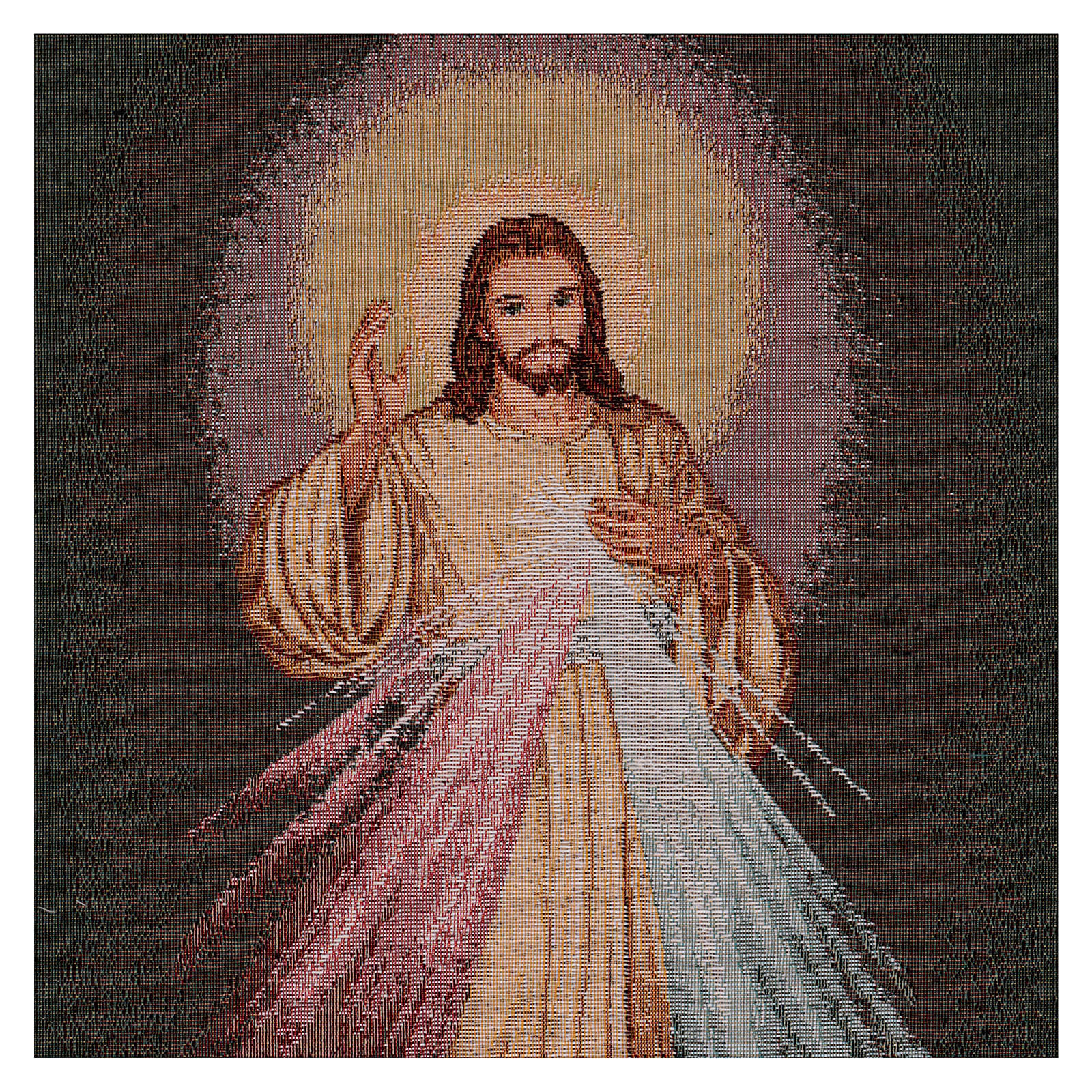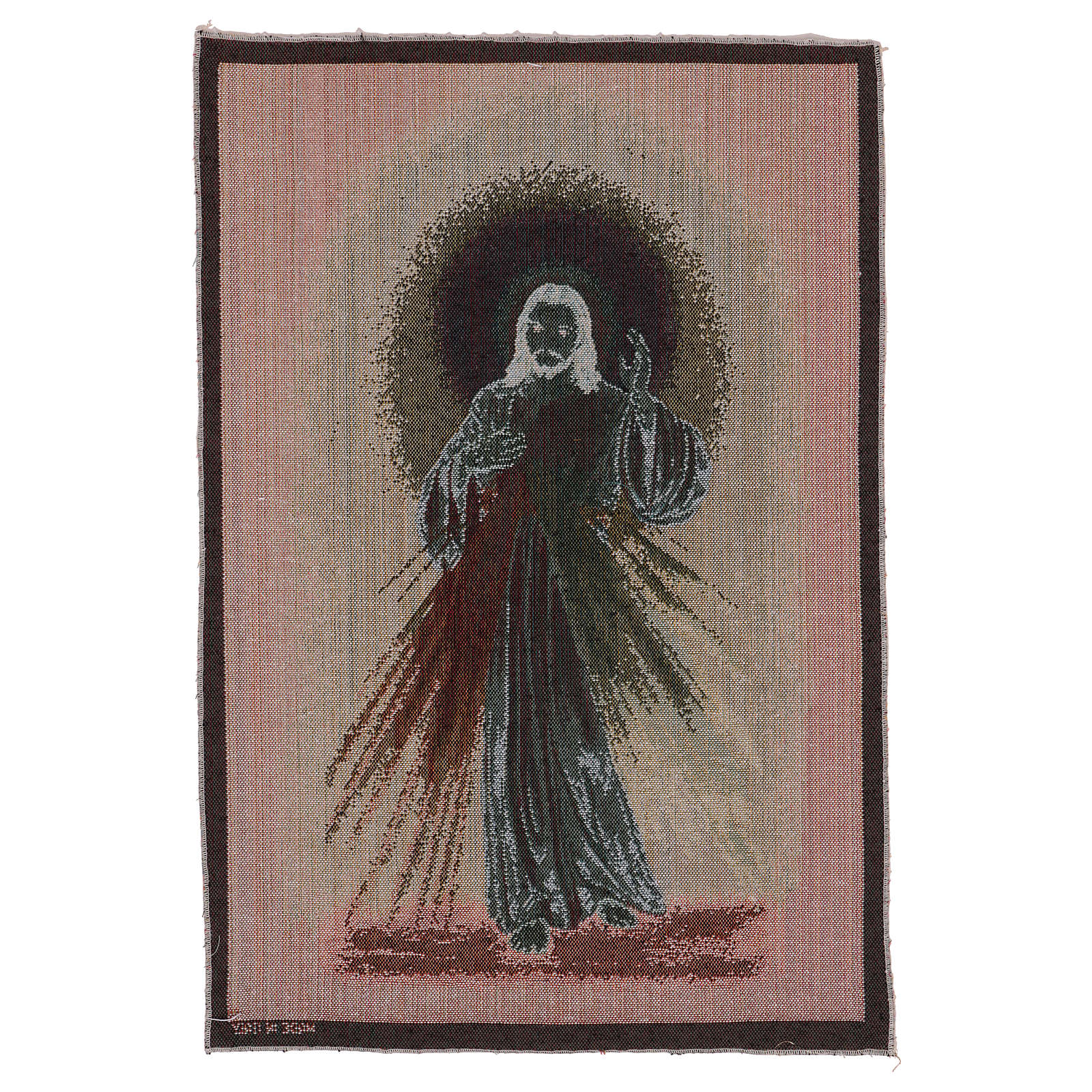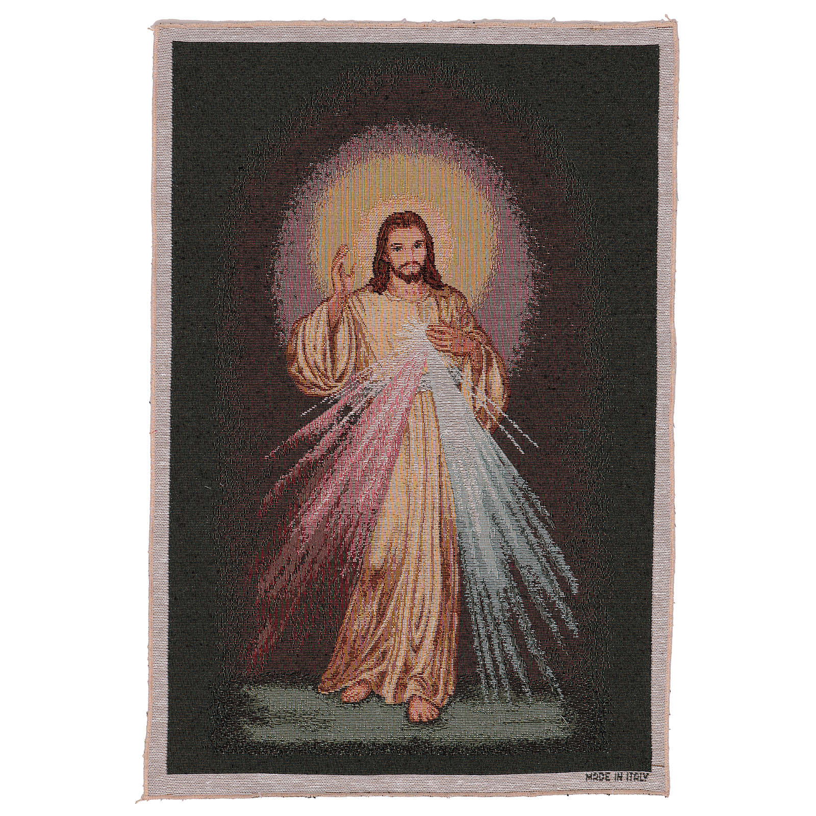 Tapiz Misericordioso con fondo oscuro de 60x40 cm de tejido jacquard realizado en Italia y acabado a mano.