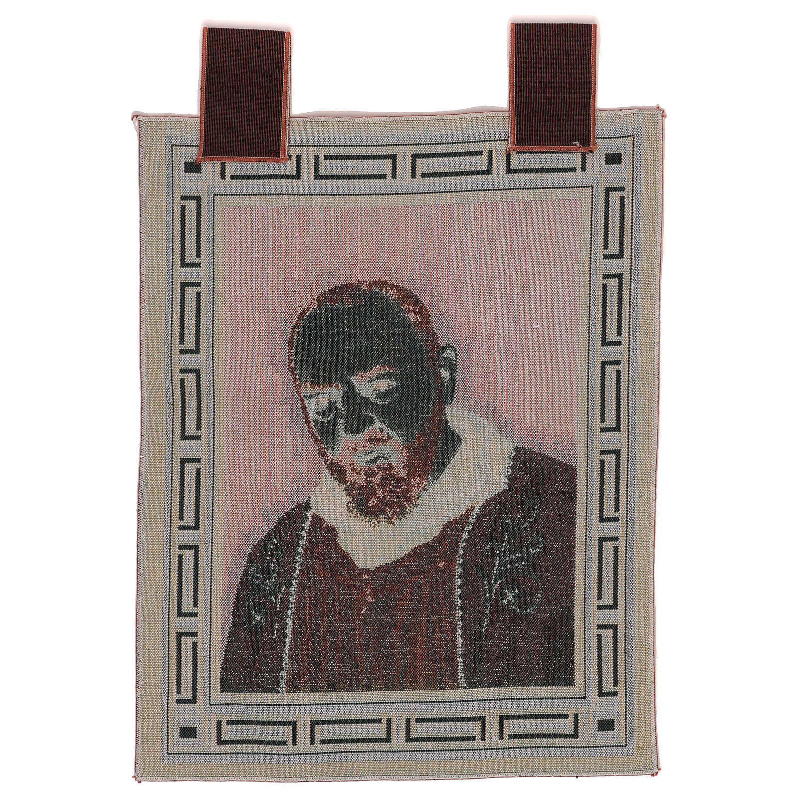 Tapiz Padre Pío con estola de 50x40 cm con marco y ganchos.Tapiz de tejido jacquard realizado en Italia y acabado a mano.
