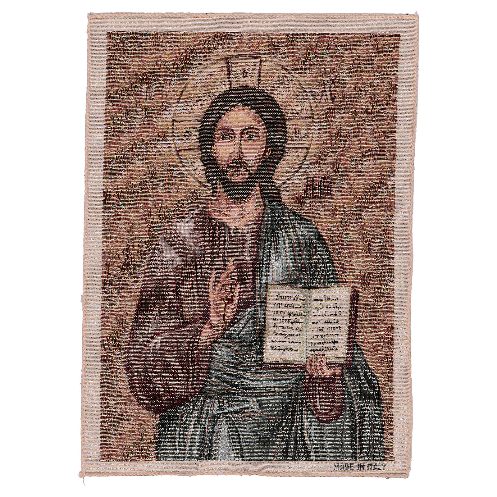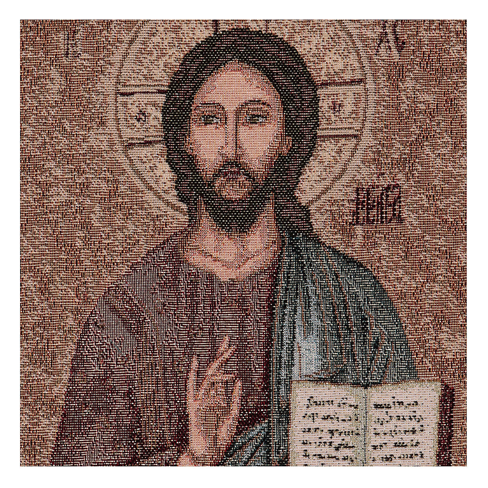 Tapiz Pantocrátor de 40x30 cm detejido jacquard realizado en Italia y acabado a mano.