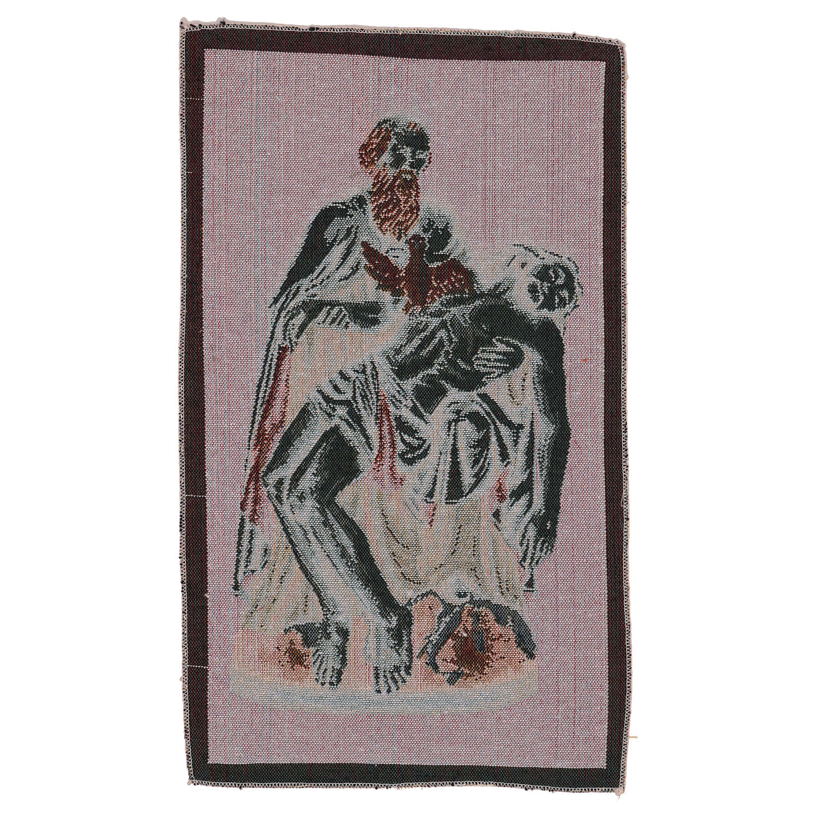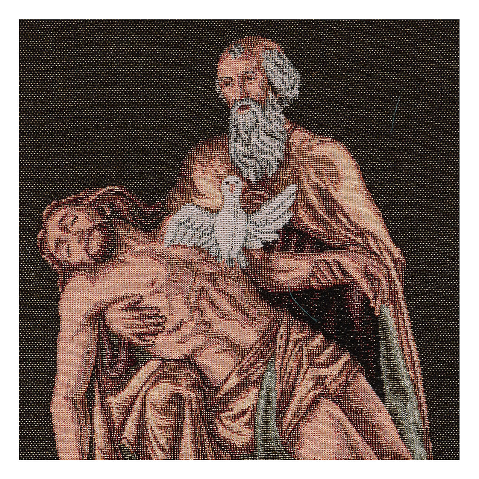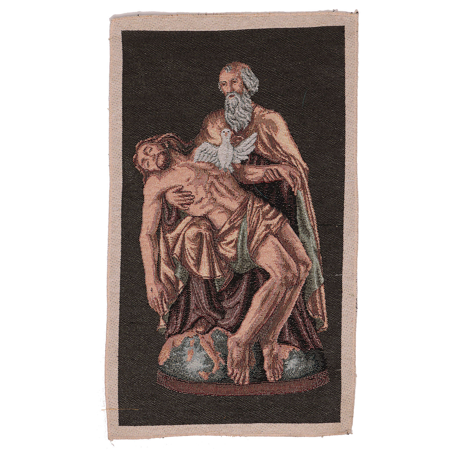 Tapiz Pasión de Dios con Paloma de 40x30 cm de tejido jacquard realizado en Italia y acabado a mano.