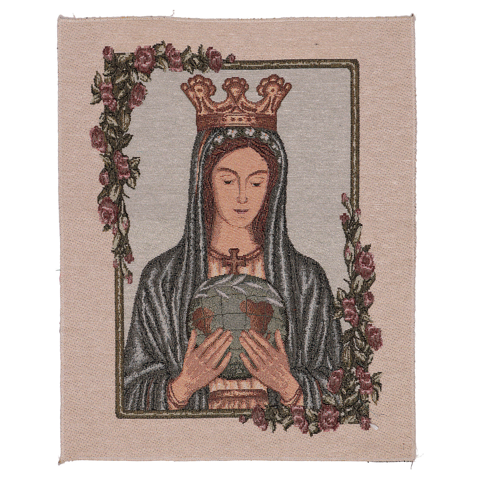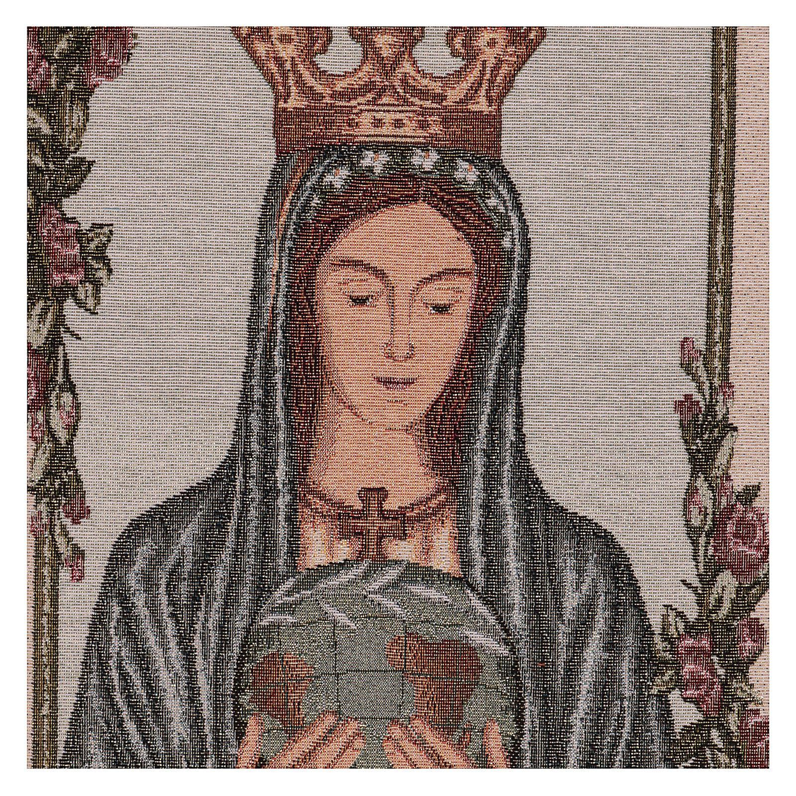 Tapiz Reina Pacis de 50x40 cm de tejido jacquard realizado en Italia y acabado a mano.