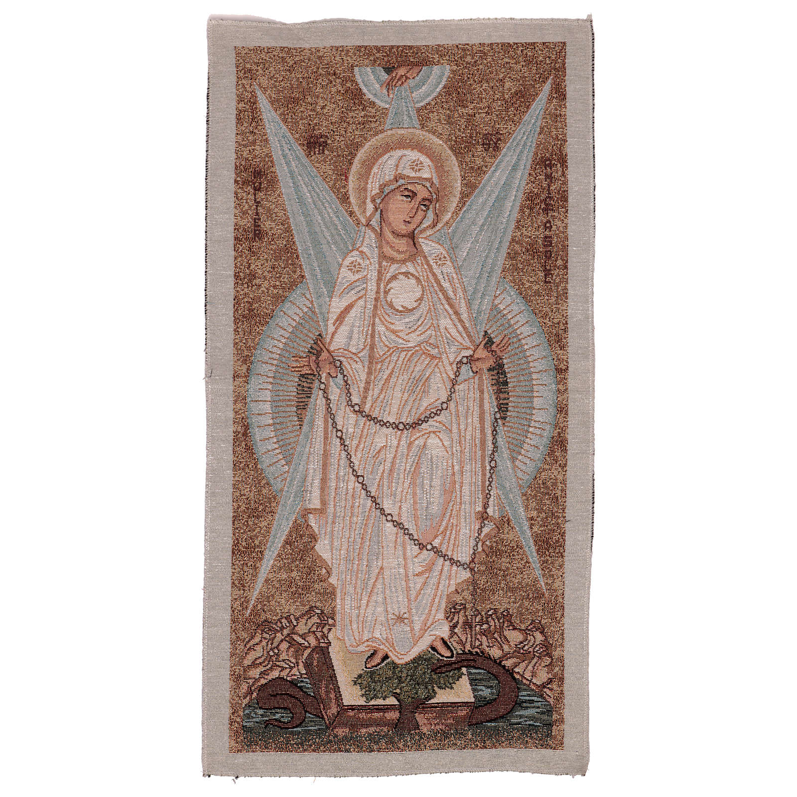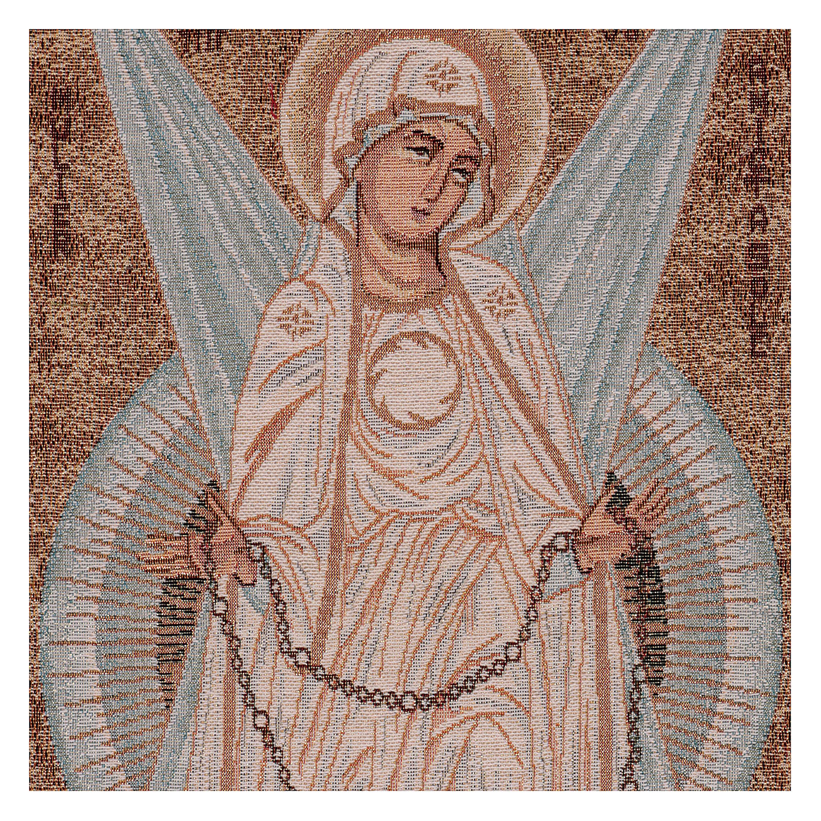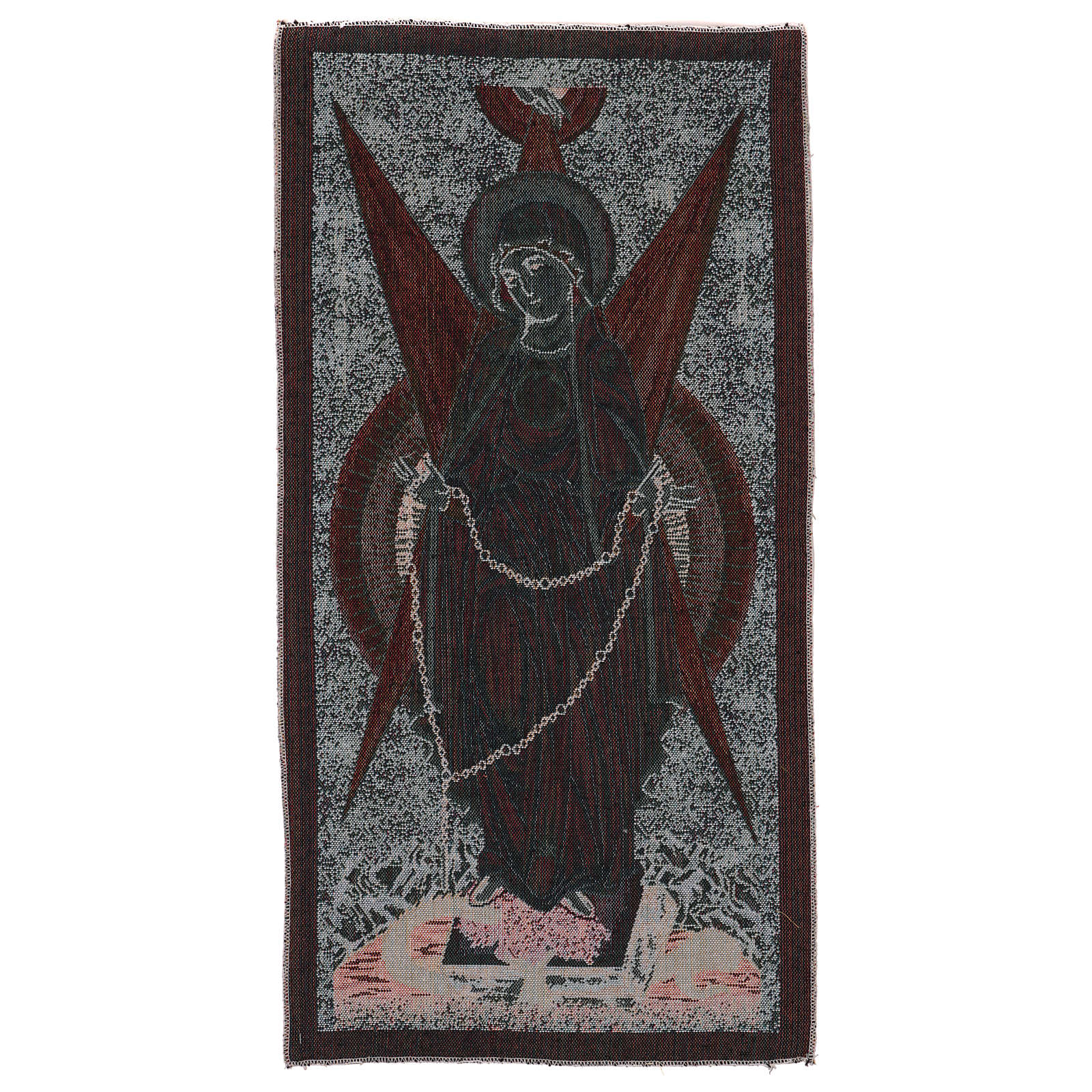 Tapiz Virgen con Rayos de 30x60 cm de tejido jacquard realizado en Italia y acabado a mano.