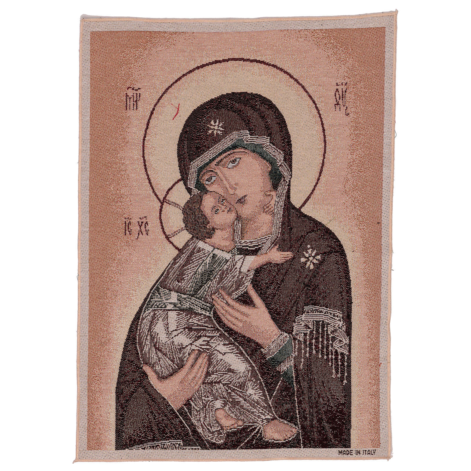Tapiz Virgen de la Ternura de 50x40 cm de tejido jacquard realizado en Italia y acabado a mano.
