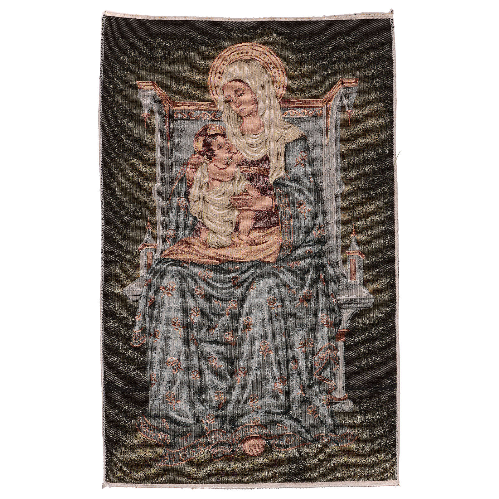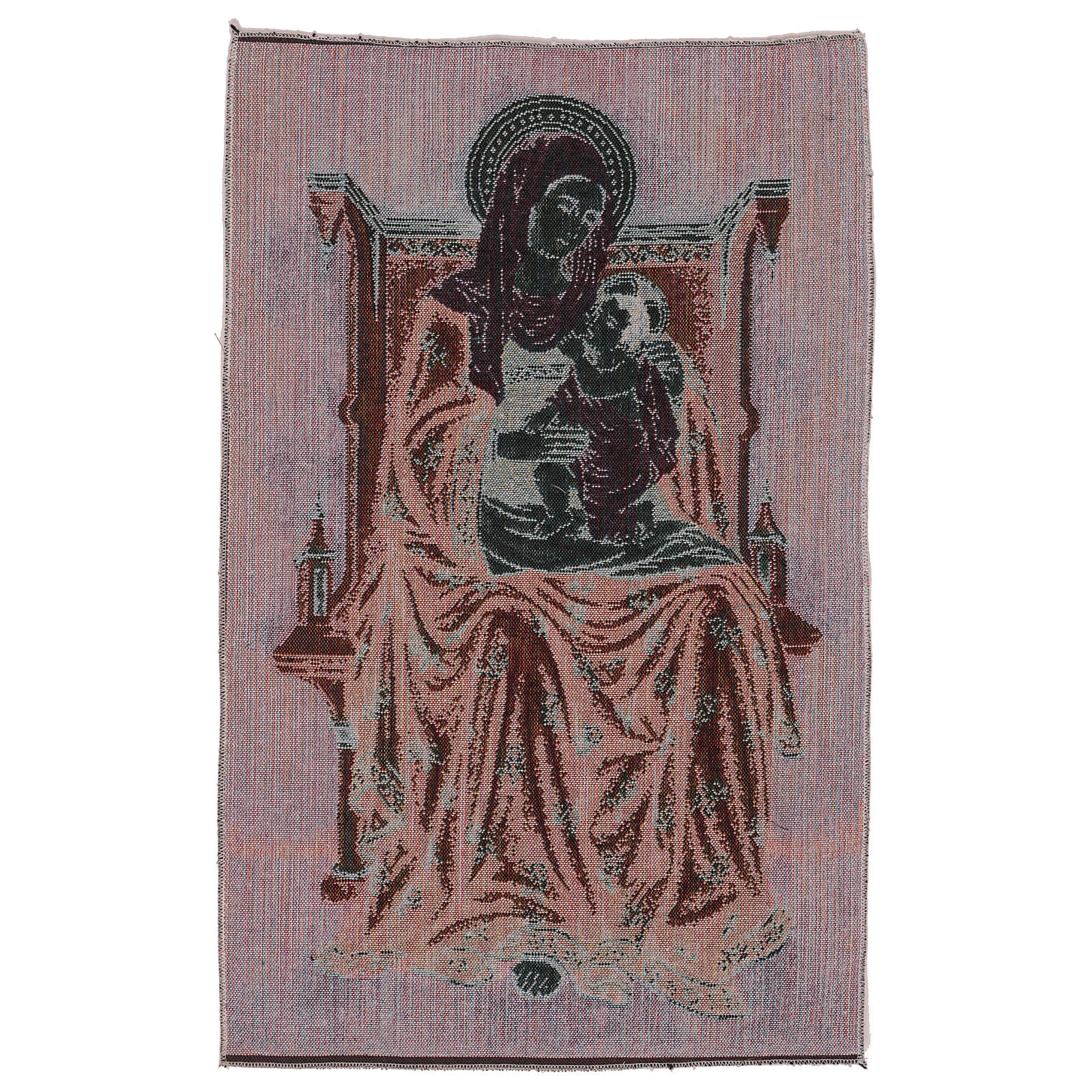 Tapiz Virgen de los Ángeles de 60x40 cm de tejido jacquard realizado en Italia y acabado a mano.