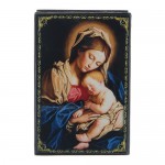 Caja laca rusa Virgen con Niño, reproducción estilizada del retrato original «Virgen con Niño» del famoso maestro Sassoferrato, expuesto en la Pinacoteca Comunal de Cesena.