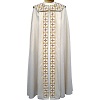 Luego está la capa pluvial, una capa grande con una especie de capillo en la espalda, larga casi hasta los pies y abierta en la parte delantera. La usan los obispos y los presbíteros en celebraciones solemnes fuera de la misa y se detiene en el pecho con un cierre que varía según el grado eclesiástico.