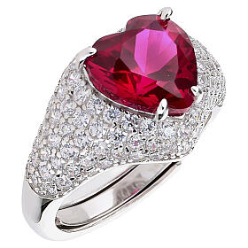Anillo corazón zircón rubí plata 925 Amen